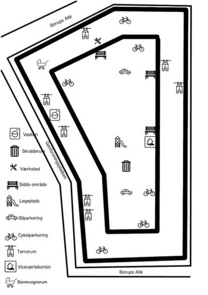 Her på siden kan du læse lidt om de faciliteter du finder i og omkring bebyggelsen. Samt finde en oversigt over renovering foretaget i/på bygningen.